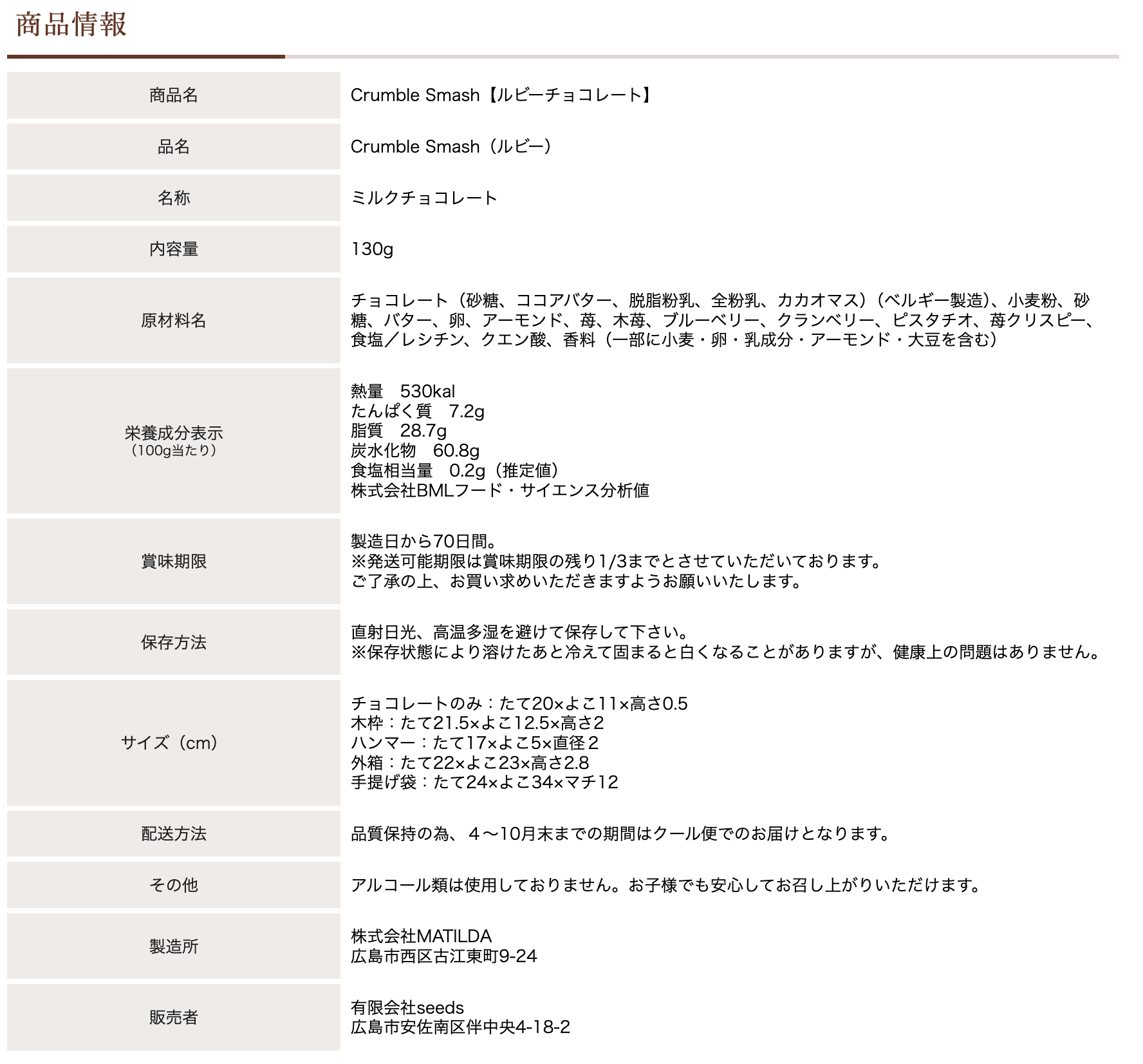 商品名 | Crumble Smash【ルビーチョコレート】 |