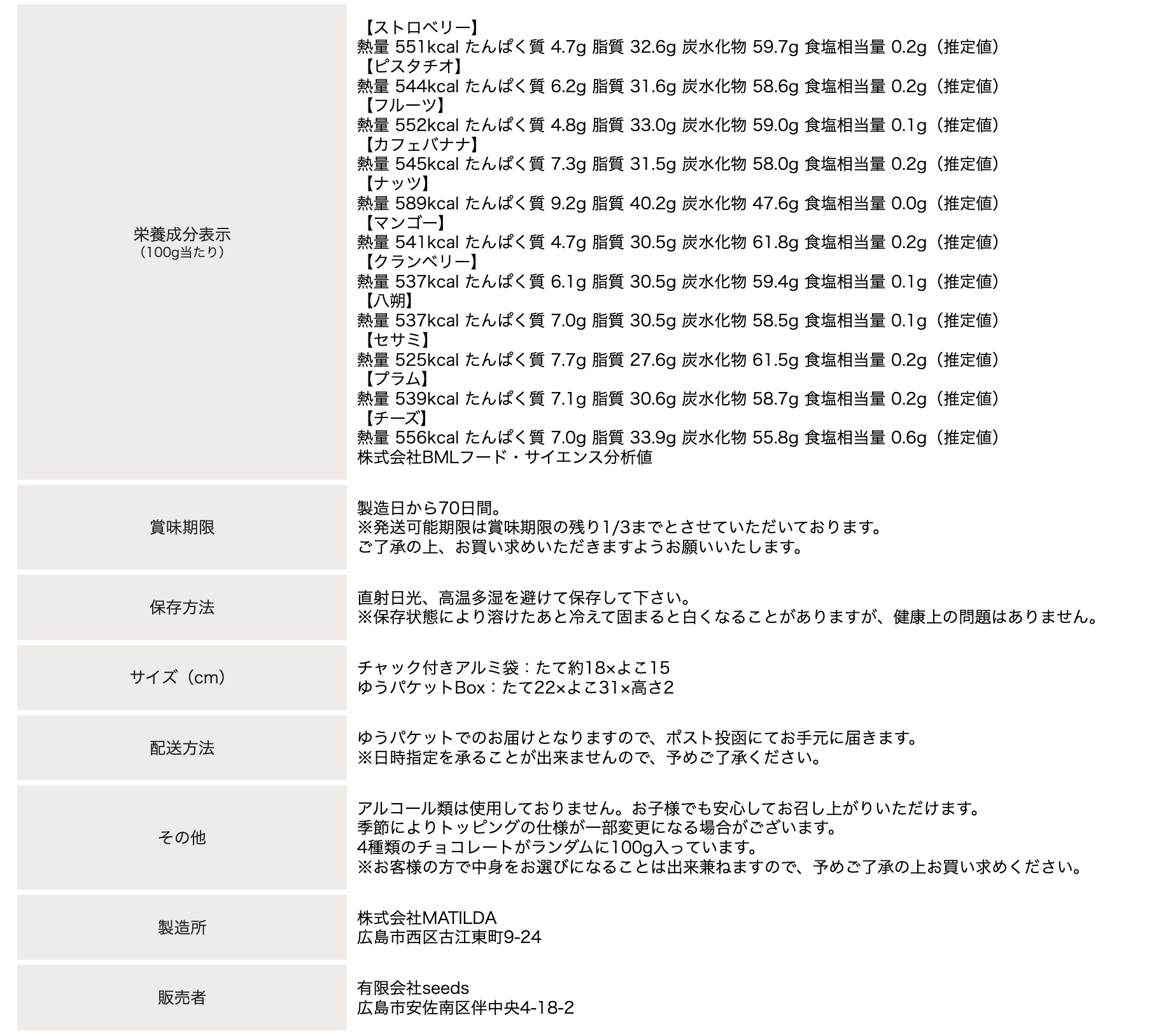 | 製造所 | 株式会社MATILDA 広島市西区古江東町9-24 |